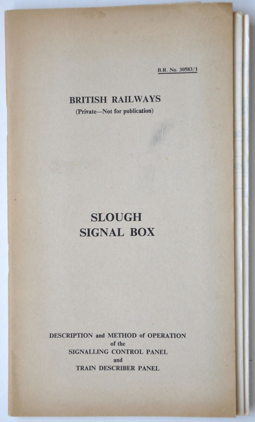 Category: Signalling PaperworkBR(W) internal publication "Slough Signal Box - description and method of operation". Card covers, 36pp plus fold out diagram, circa early 1960s. £10 | |