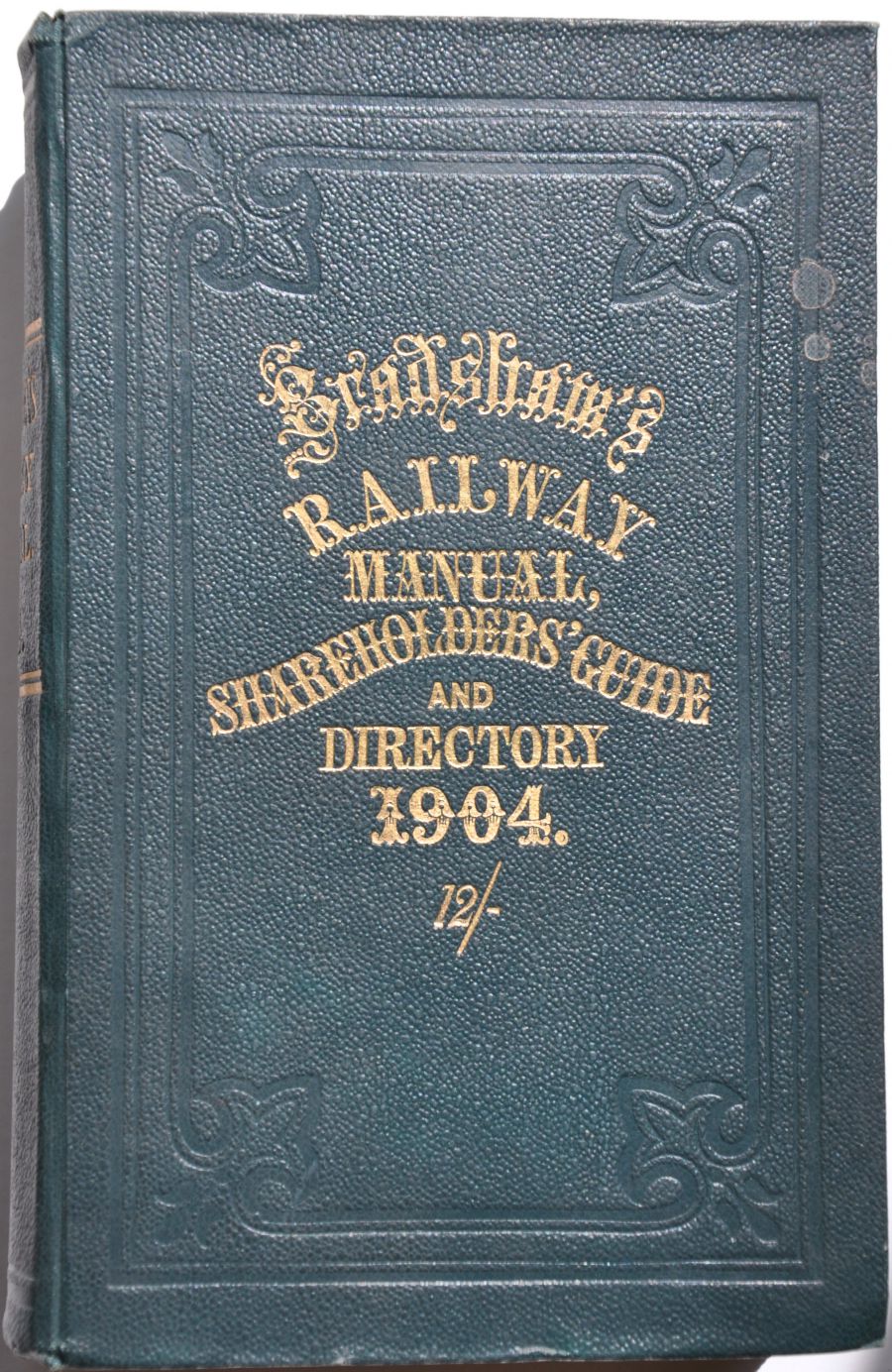 Category: BooksBRADSHAW'S RAILWAY MANUAL, SHAREHOLDER'S GUIDE AND DIRECTORY dated 1904. Green coloured clothbound hardback covers with title in gold on front and spine, 672pp plus fold out maps. £10 | |