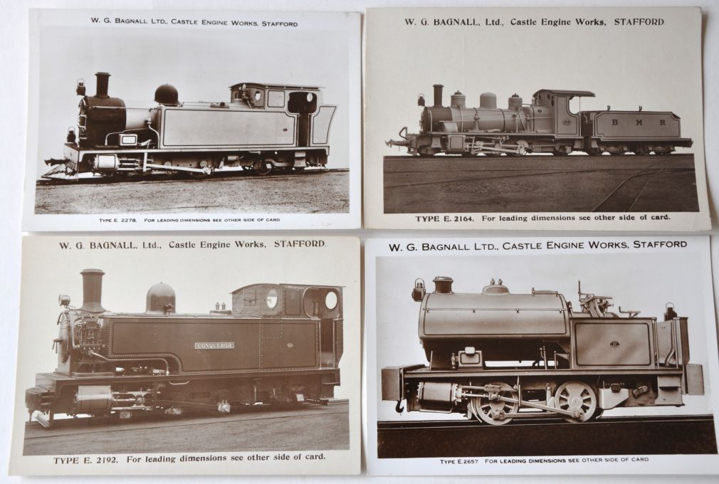 | Lot 170 | Category: Manufacturers' Catalogues (loco etc.)W.G. BAGNALL. 12 official photographic cards showing B&W views of company locomotives. Reverse side shows technical details. No apparent duplication. (12) £10 |