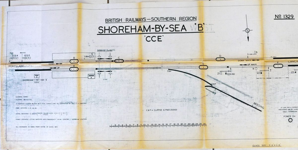 Lot 224 | Category: Signal Box DiagramsBR(S) office copy signalbox diagram from Shoreham by Sea B signalbox. Dated 1985. Folded. £10 |