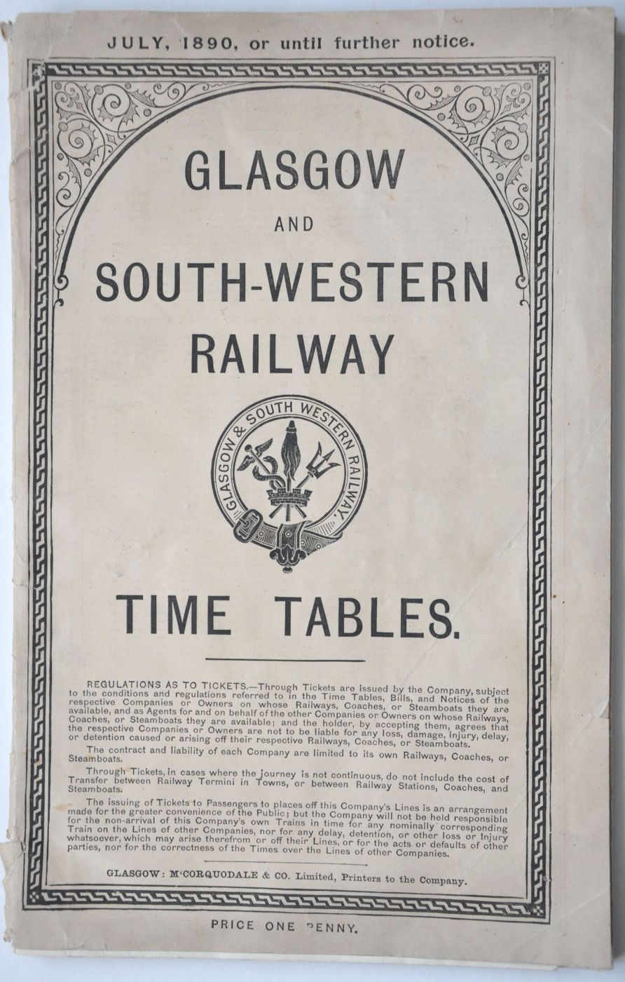 Category: Timetables (Public)G&SWR PTT booklet dated July 1890. Brown paperback covers, 96pp plus fold out map. Covers detached otherwise good condition. £24 | |