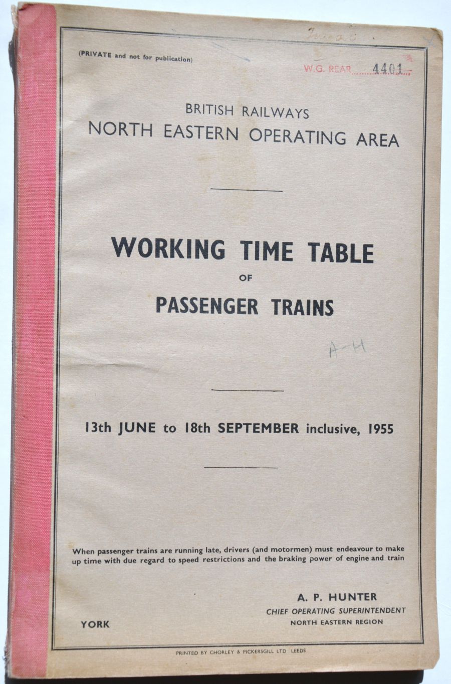 Category: Timetables (Working)BR(NE) sections A-H WTT of passenger trains. 200+pp dated June 1955. £10 | |