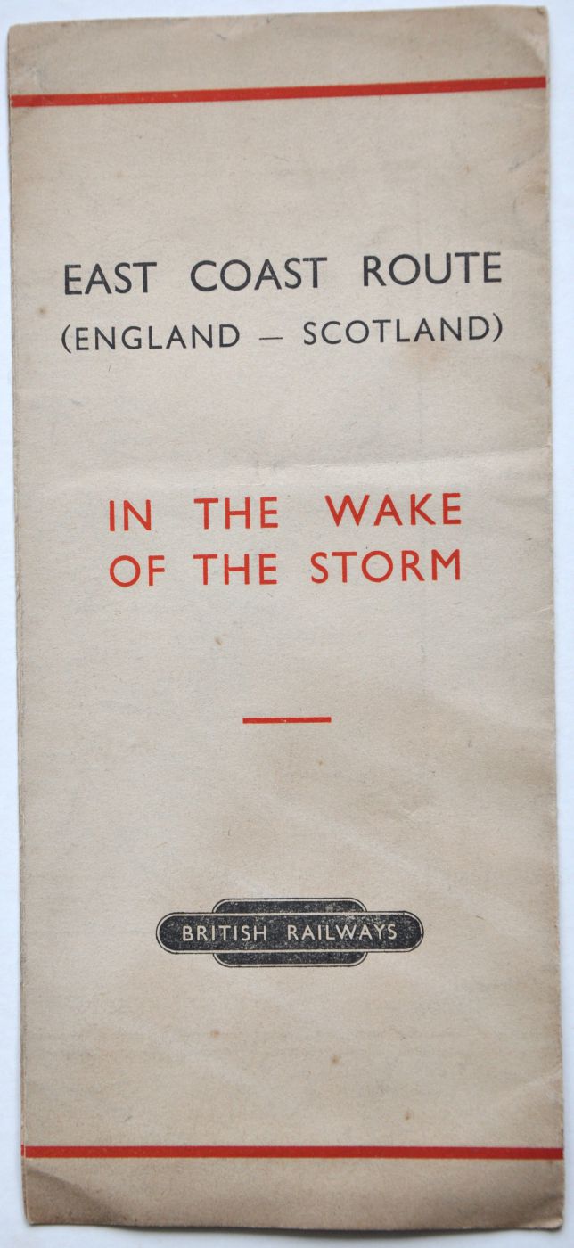 Category: Publicity MaterialRAILWAY EXECUTIVE 8pp fold out leaflet "In the Wake of the Storm" detailing the effects of the storm and flood of August 12th 1948 on the section of the ECML between Berwick and Dunbar. Some wear and covers darkened with age. £10 | |