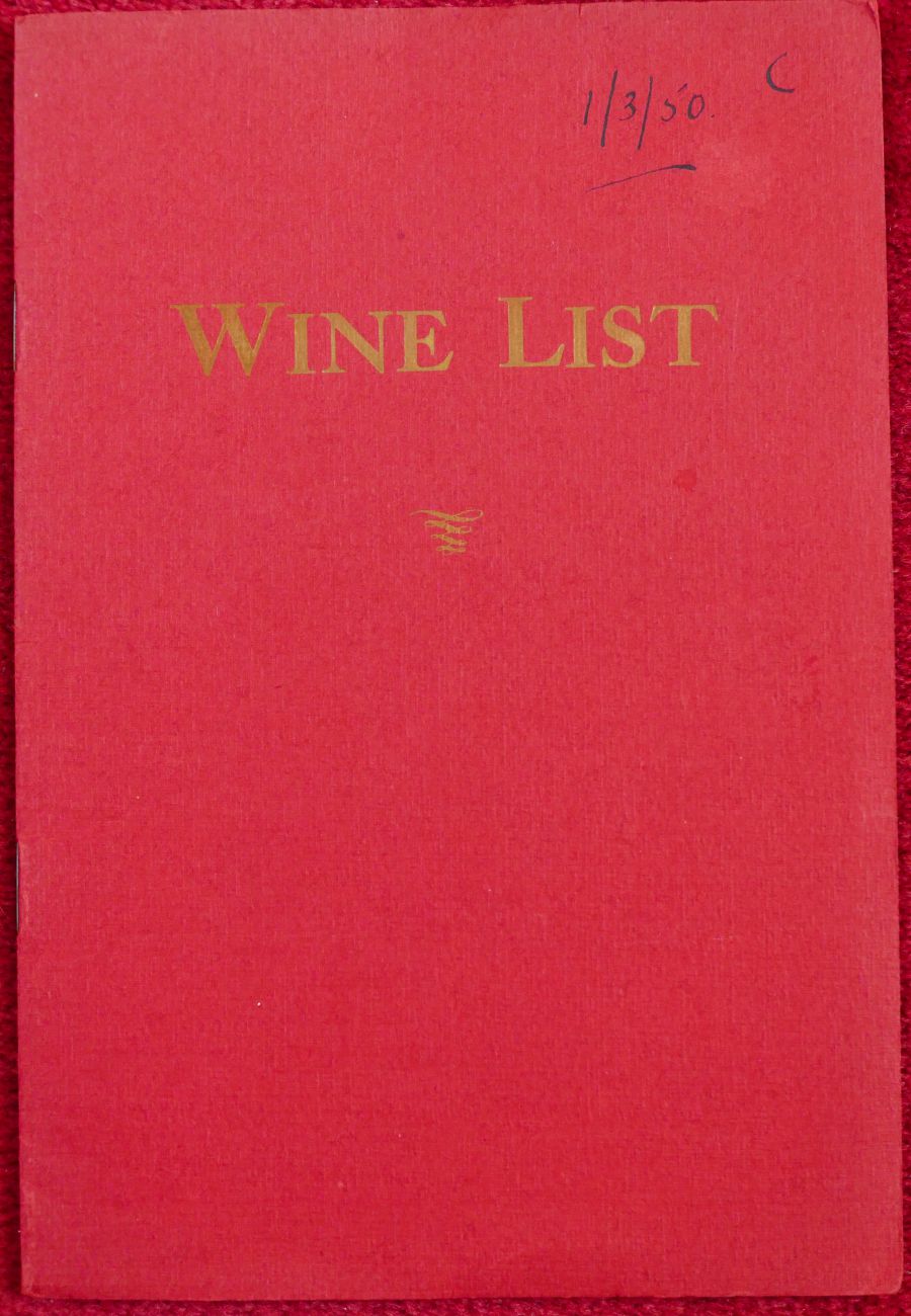 Category: MenusBRITISH TRANSPORT HOTELS EXECUTIVE Edinburgh wine list. Red card covers with title in gold on front, containing 12pp list. Dated 1950. £10 | |