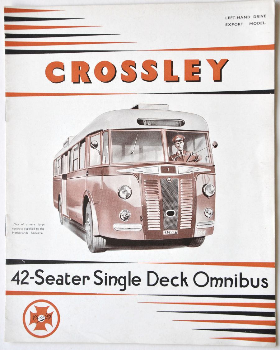 Category: Bus and TramCROSSLEY MOTORS brochure for the 42 seater single deck omnibus, left hand drive model produced for the export market. Coloured pictorial cover, 8pp, fully illustrated, dated 1948. £10 | |