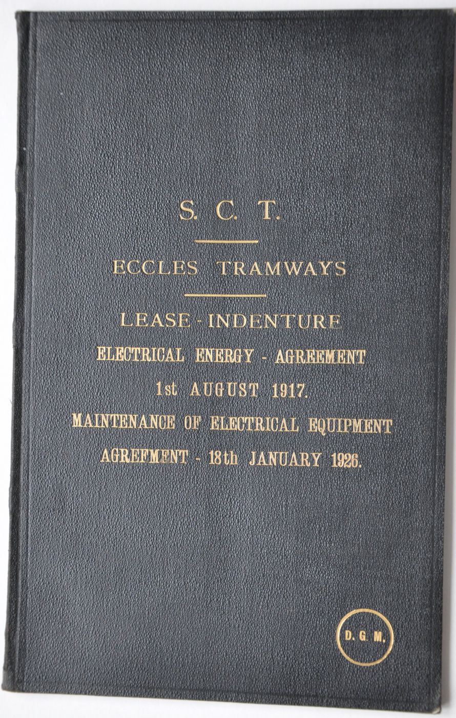 Category: Bus and TramSALFORD CORPORATION TRAMWAYS agreement for the lease of Eccles Tramways. Foolscap sized, 12pp in clothbound card covers with title in gold on front. Dated 1917 with additions to 1926. £10 | |