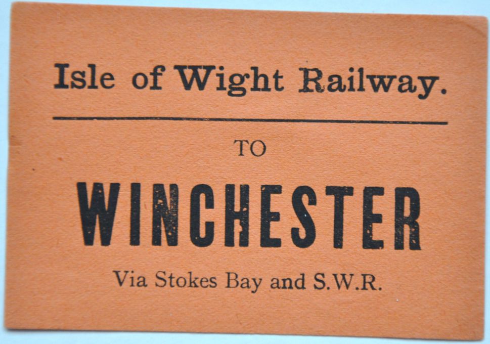 Lot 441 | Category: Luggage LabelsISLE OF WIGHT RAILWAY I43 type luggage label on orange coloured paper "To Winchester via Stokes Bay and SWR". £10 |