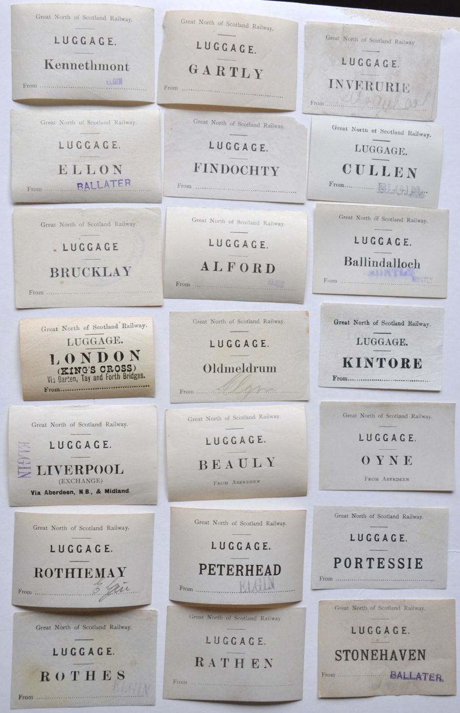 Category: Luggage LabelsTwenty one GNSR type G45 and G47 luggage labels on white paper. No duplication, minor faults to a few. (21) £10 | |
