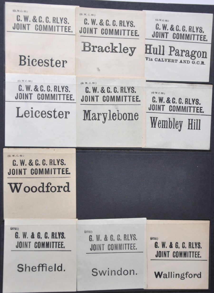 Category: Luggage LabelsSeventeen GW & GC JOINT COMMITTEE types G91 - G94 luggage labels. No duplication. (17) £10 | |