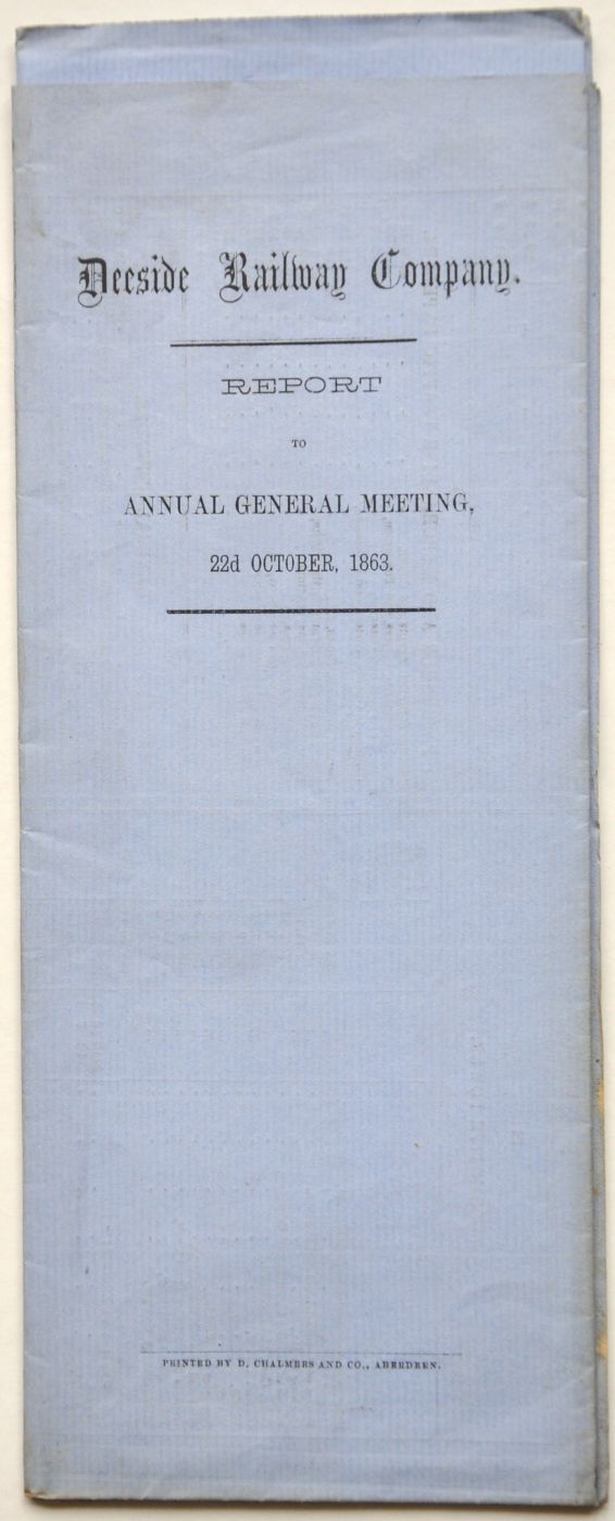 Category: Financial and AccountsDEESIDE RAILWAY COMPANY director's report and statement of accounts for year ending August 1863. 6pp on blue paper. £10 | |