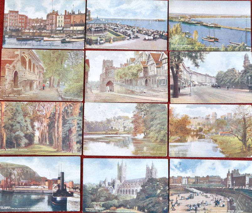 Lot 564 | Category: PostcardsFifty LNWR official cards. All coloured, most showing scenic views. No apparent duplication. Reasonable condition. (50) £10 |