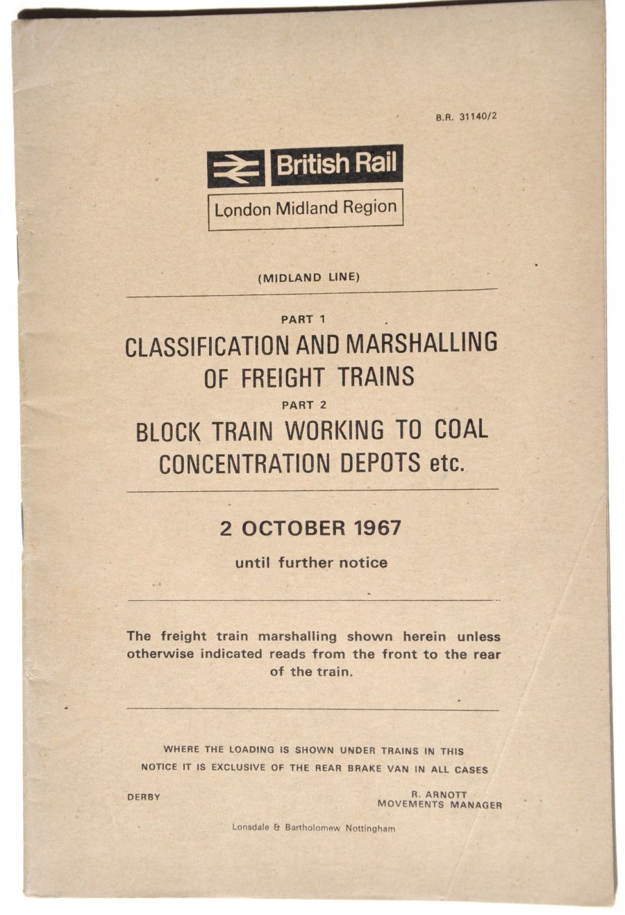 Category: Working InstructionsBR(M) Midland Line two part booklet "Classification and Marshalling of Freight Trains - Block Train Working to Coal Concentration Depots". 25pp dated October 1967. £10 | |