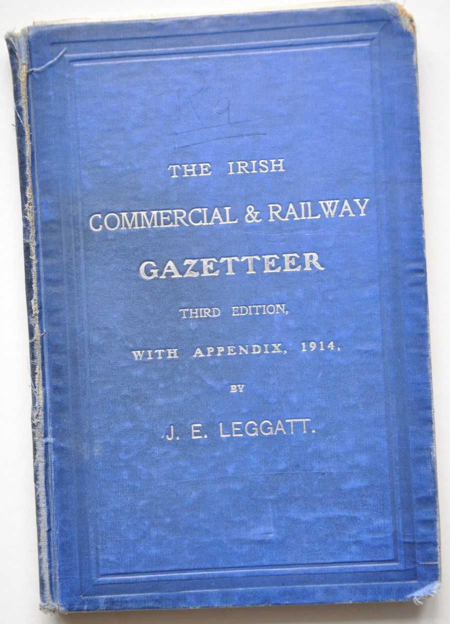Category: BooksTHE IRISH COMMERCIAL & RAILWAY GAZETTEER compiled by J Leggatt. Third edition dated 1907 with appendix dated 1914. Hardback, 98pp with title in gold on front. Covers rubbed. £10 | |