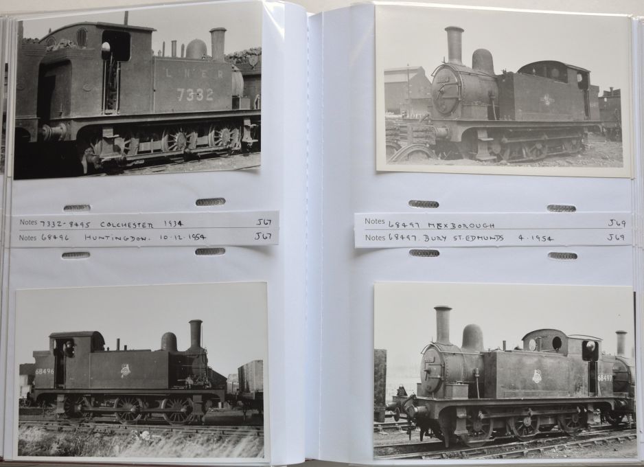 Lot 648 | Category: PhotographsALBUM containing approx 200 postcard sized B&W photos of ex GER J65, J66 and J69 locos in LNER and BR livery. Reasonable quality, all identified. £10 |