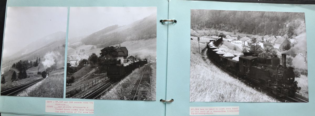 Lot 654 | Category: PhotographsALBUM containing over 90 postcard sized and larger B&W photos of Austrian steam loco views in 1975. All captioned. Reasonable quality. £10 |