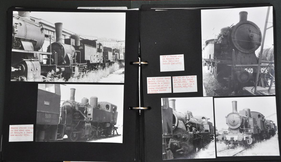 Lot 656 | Category: PhotographsALBUM containing over 90 postcard sized and larger B&W photos of Italian steam locos in 1981. All captioned. Reasonable quality. £10 |