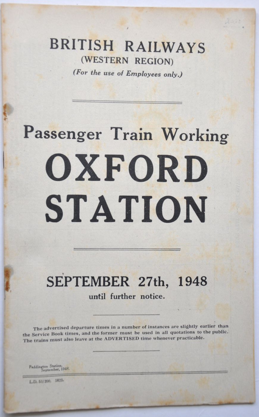 Category: Working InstructionsBR(W) booklet "Passenger Train Working Oxford Station". 34pp dated September 1948. £10 | |
