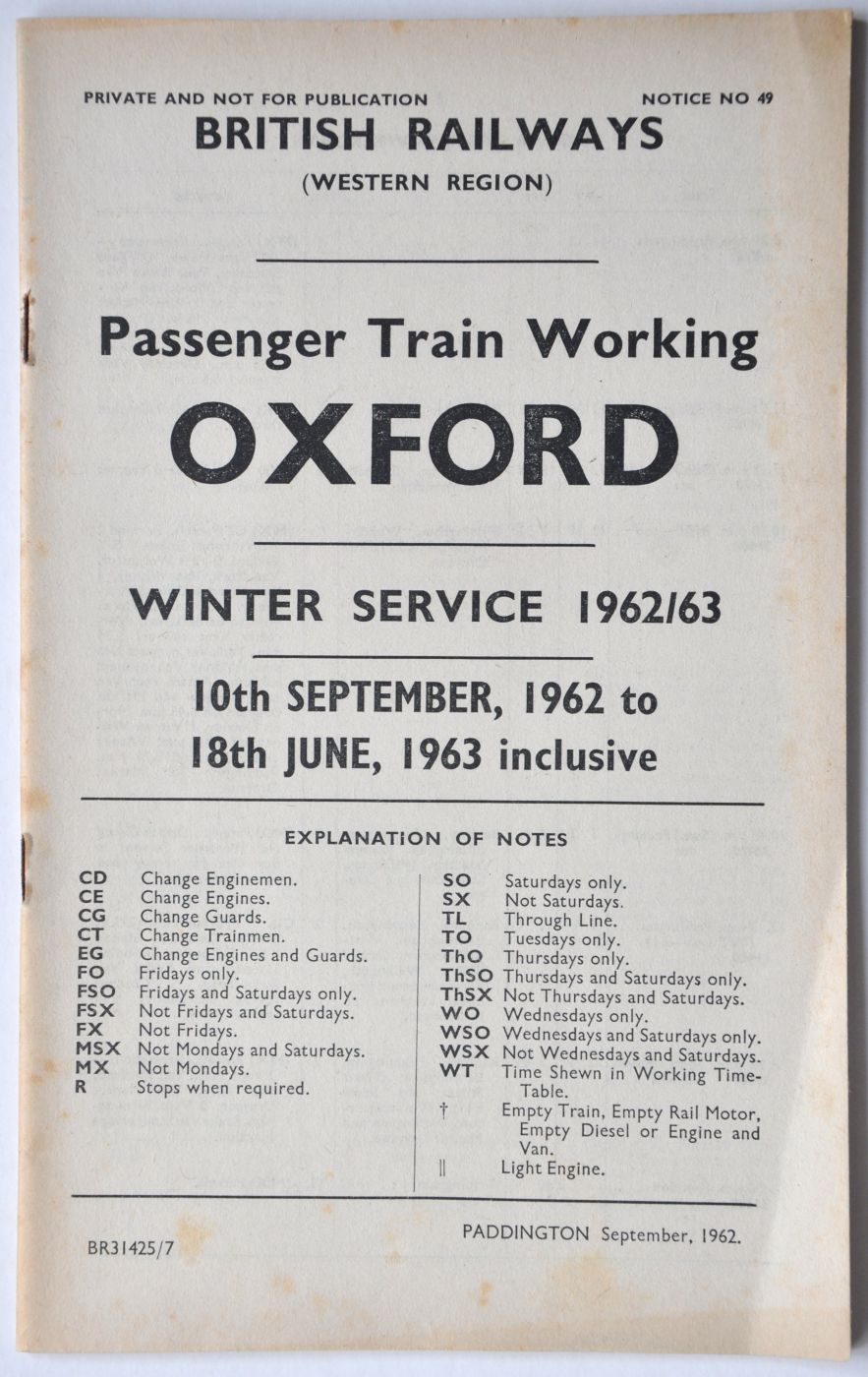 Category: Working InstructionsBR(W) booklet "Passenger Train Working Oxford Station". 44pp dated September 1962. £10 | |
