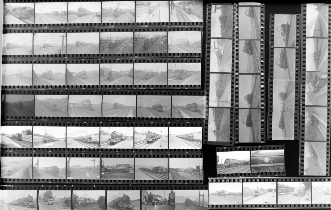 | Lot 670 | Category: Photographic NegativesAPPROX 100 35mm B&W negatives in strips showing 1960s steam views. Various locations. Appear reasonable quality. (100) £10 |