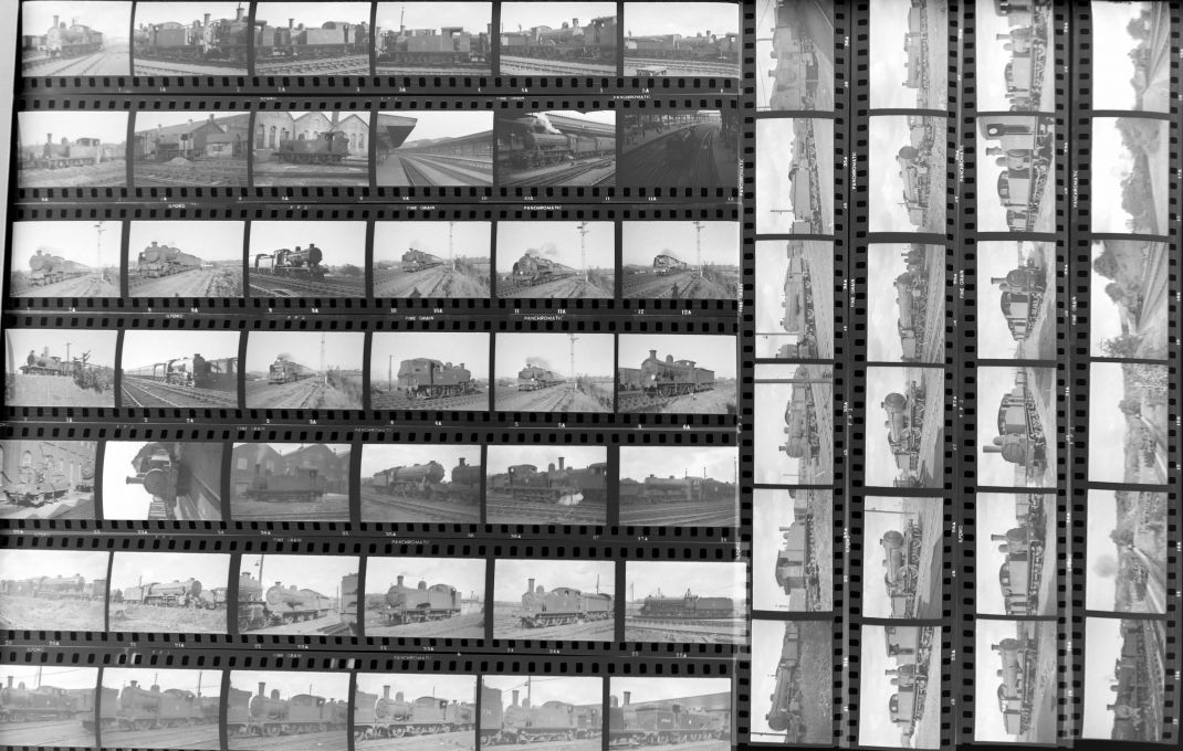 Lot 690 | Category: Photographic NegativesAPPROX 80 35mm B&W negatives in strips showing steam locos from various regions (several Southern Region noted) in the 1950s. Appear reasonable quality. (80) £10 |