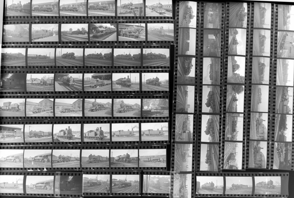 Lot 691 | Category: Photographic NegativesAPPROX 80 35mm B&W negatives in strips showing steam locos from various regions (several Eastern Region noted) in the 1950s. Appear reasonable quality. (80) £10 |