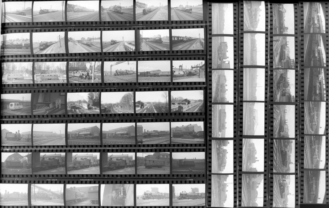 Lot 694 | Category: Photographic NegativesAPPROX 80 35mm B&W negatives in strips showing steam locos from various regions in the 1950s. Appear reasonable quality. (80) £10 |