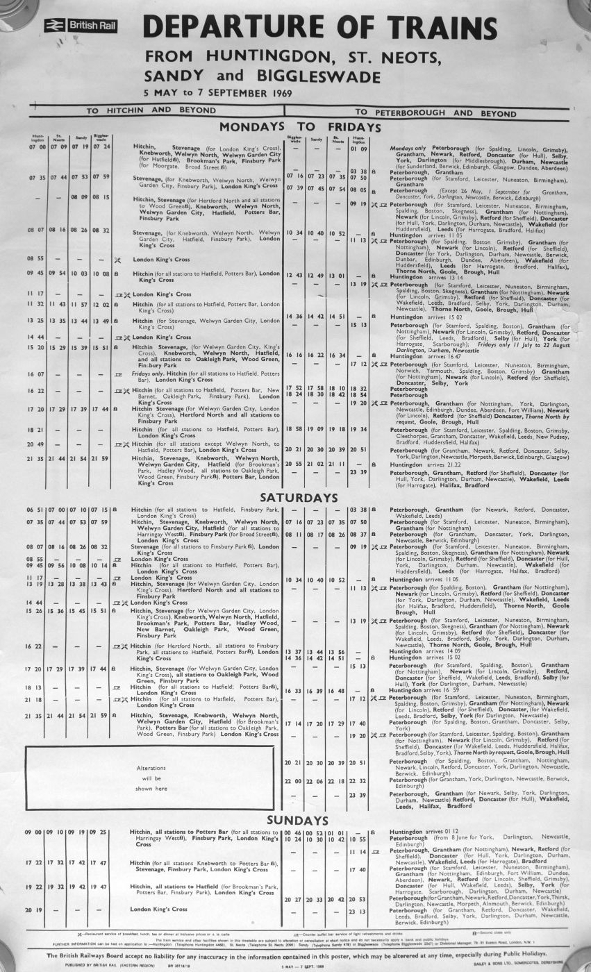 Category: PostersBR(E) d/r departures poster for Huntingdon, St.Neots, Sandy and Biggleswade stations. Dated May 1969. £10 | |