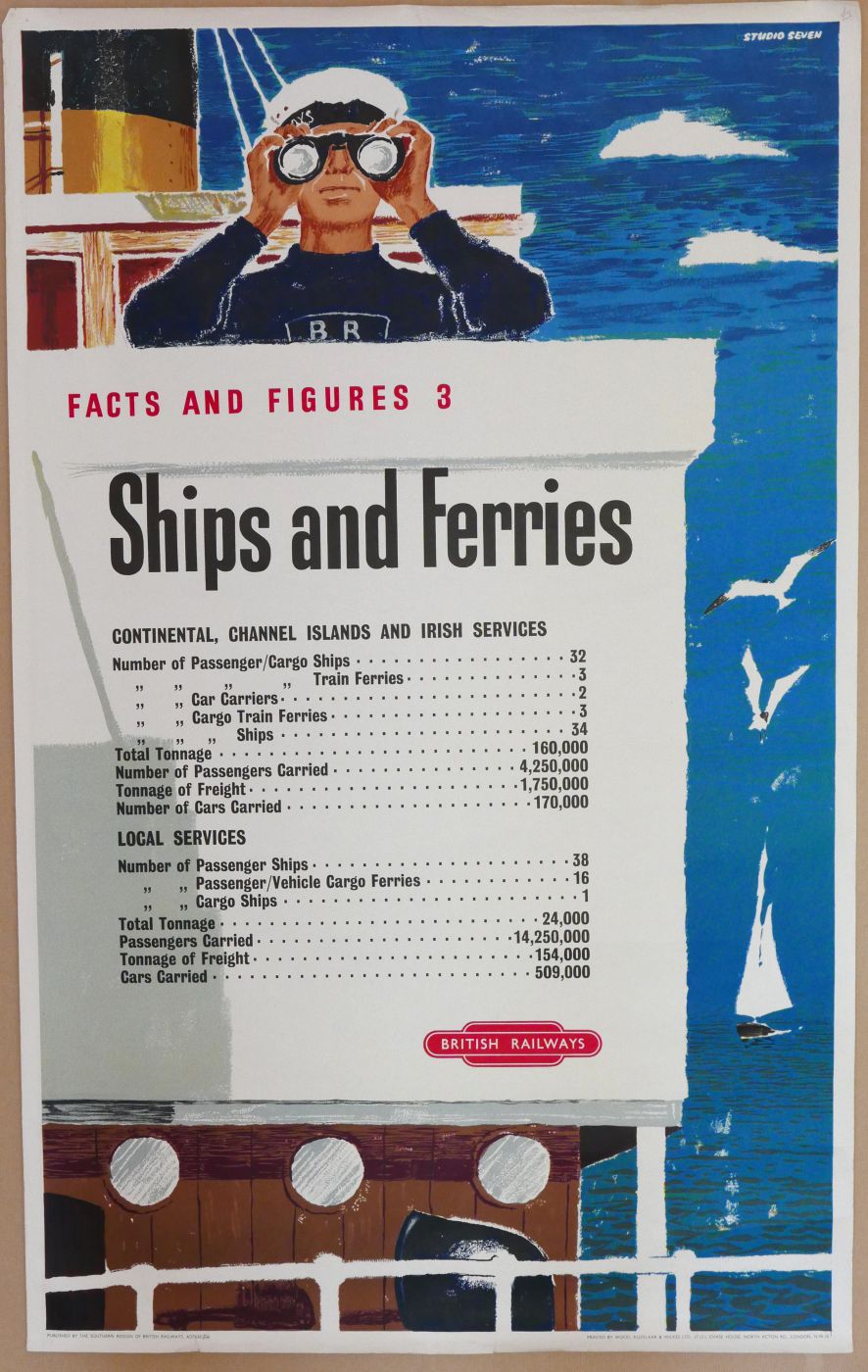 Category: PostersBR(S) d/r coloured pictorial poster issued as No.3 in the "Facts and Figures" series detailing the work of the ships and ferries. Shows Studio Seven view of sailor on bridge. Dated 1957. £10 | |