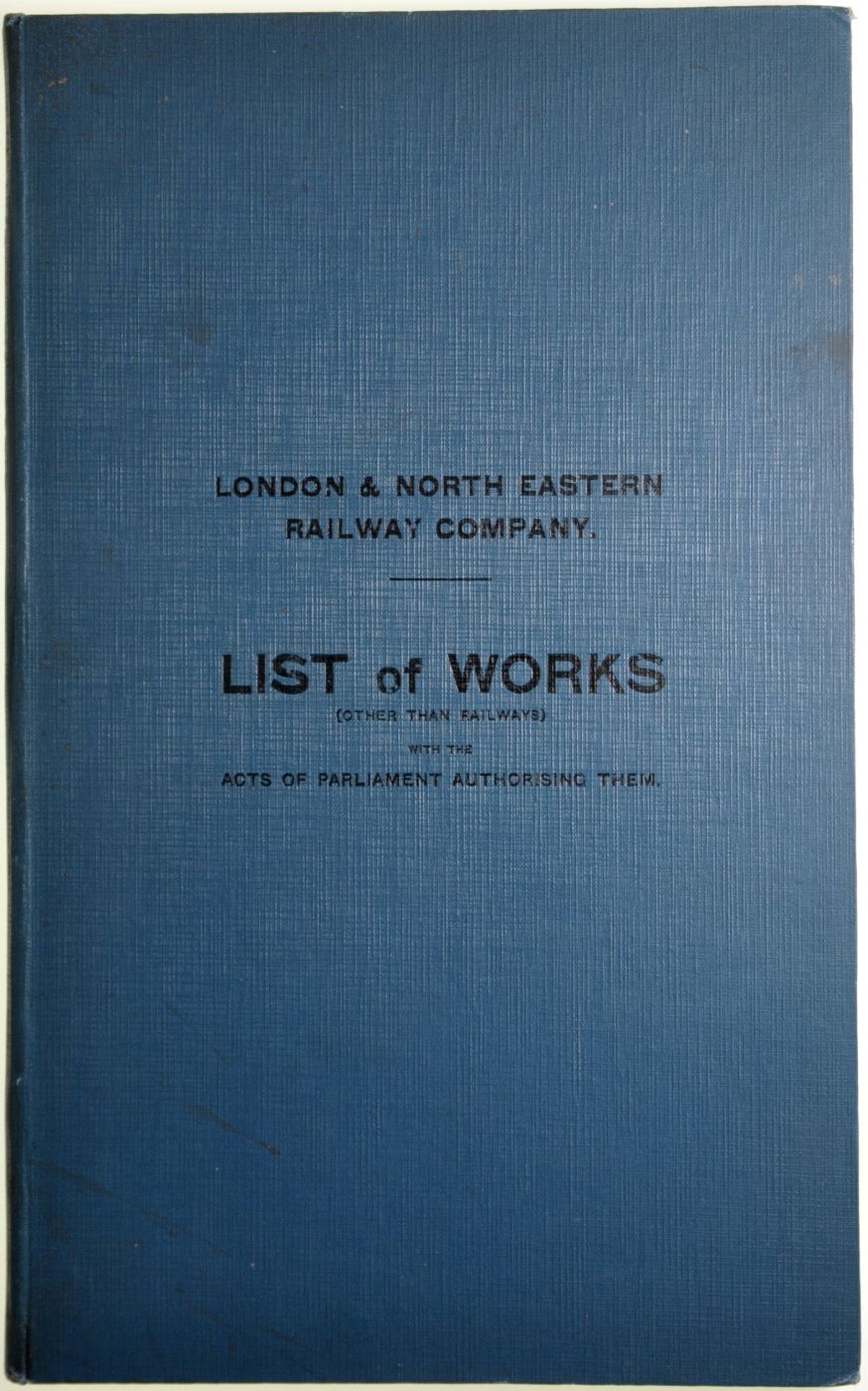 Category: Reports and RecordsLNER, List Of Works Other Than Railways And Acts Authorising, 1930, 113pp, blue titled boards. | |