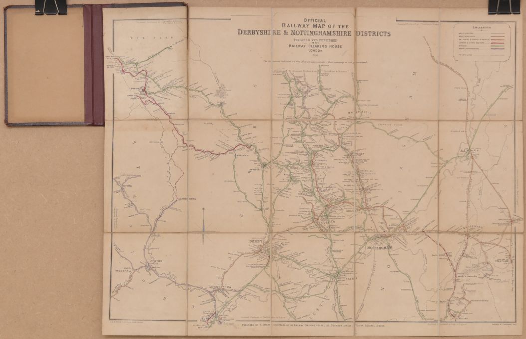 | Lot 1074 | Category: Maps (RCH)RCH, Derbyshire and Nottinghamshire Districts, 1897, a little browning to map with age, a split top left, leather covers good, spine professionally replaced. |