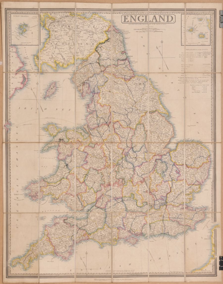 Category: MapsJ Cross, Map of England and Wales With All The Rail Roads, 1843, a few marks but generally good, with original slipcase and label, though this has some wear. | |