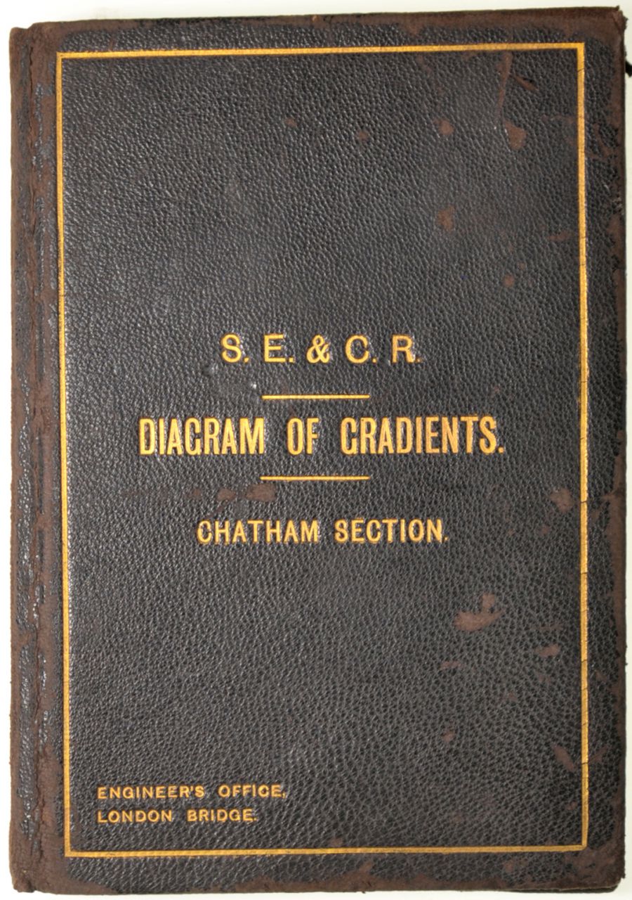 Category: PlansSECR, Diagram of Gradients, Chatham Section, folding plans with individual gilt titles, within gilt titled boards, minor defects to cover. | |