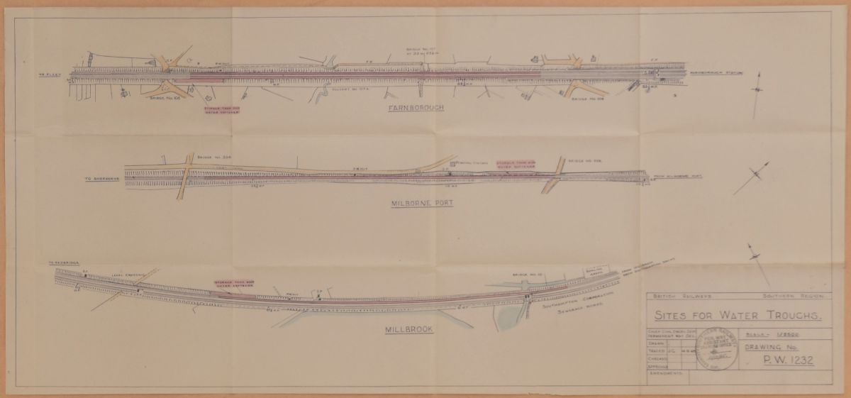 | Lot 1170 | Category: PlansBR(S), Proposed Sites For Water Troughs, 1948, plans and layout for installations at Farnborough, Milbourne Port and Millbrook, approximately 27"x12". |