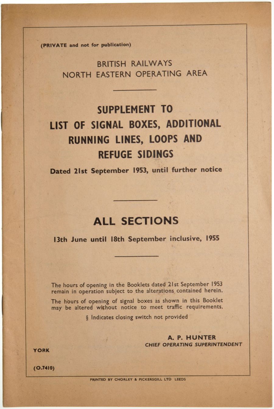 Category: Signalling PaperworkBR(NE), Supplement To List Of Signal Boxes, Summer 1955. | |
