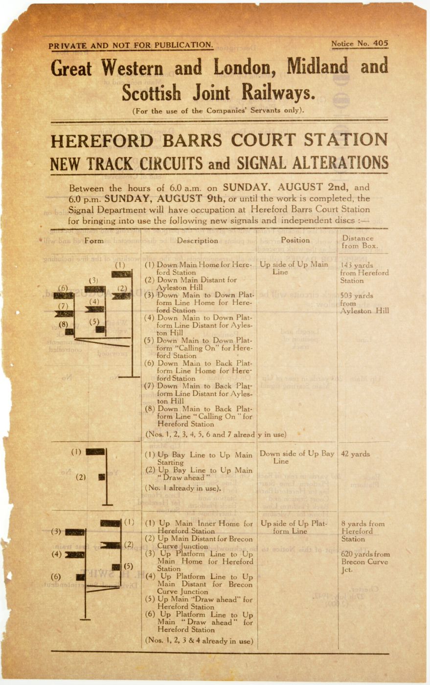 Category: Signalling PaperworkGWR, Signalling Alteration notices, locations include Barrs Court, Glascoed, Little Mill Junction, Severn Tunnel West, Pontrilas, Ayleston Hill, etc, two are tatty. (11) | |