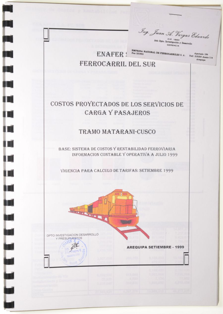 Category: Reports and RecordsPeruvian Railways, Report on a BR Consultancy Visit, a variety of paperwork, maps, books, timetables, diagrammatic form, gradient charts, also floppy disc. | |