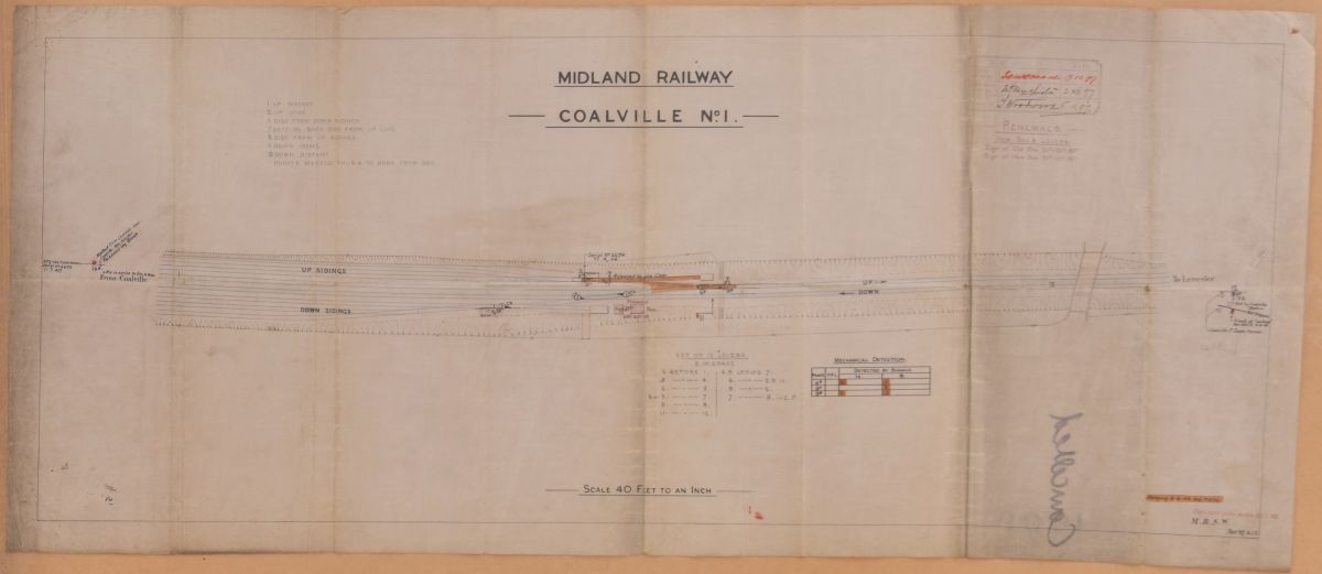 | Lot 1259 | Category: Signalling PaperworkMidland Railway, Coalville No 1, 1897, signal box diagram office copy, approximately 38"x17". |