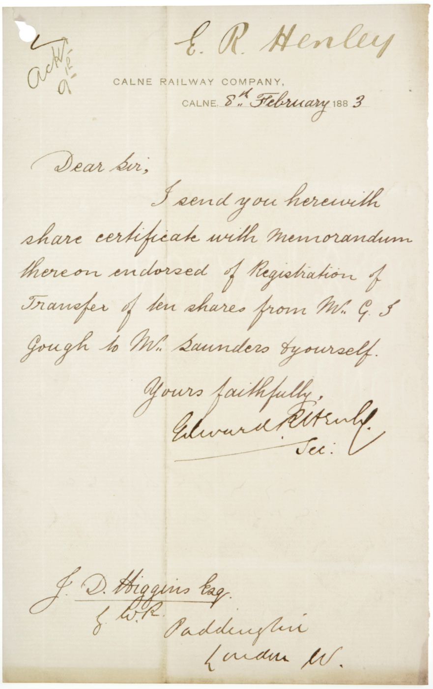 Category: PaperworkCalne Railway Company letterhead, 1883. | |