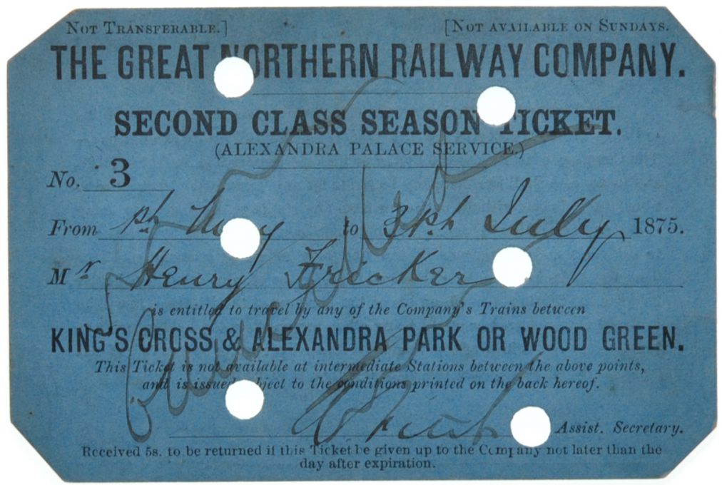 | Lot 1370 | Category: TicketsGNR Second Class Season Ticket, Alexandra Palace Service, No 3, July 1875. |