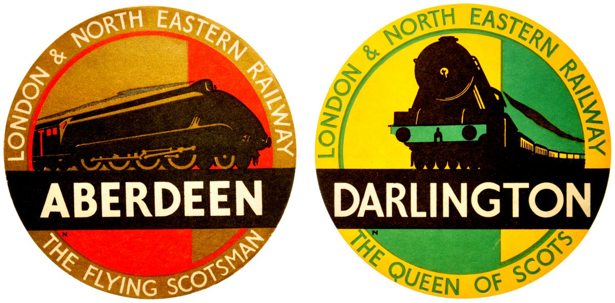 | Lot 1429 | Category: Luggage LabelsLNER, The Queen of Scots, Darlington, also The Flying Scotsman, Aberdeen. (2) |