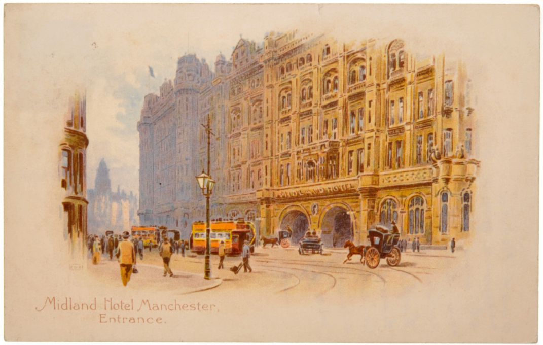 | Lot 1525 | Category: PostcardsMidland Hotel Manchester, entrance, pub. MR Co. Postally used. |