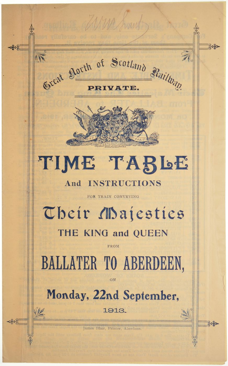 Category: Royal Train NoticesGNSR, King and Queen, Ballater-Aberdeen, 22nd September 1913, 3pp. | |