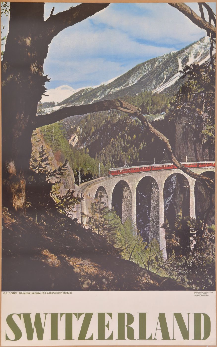 Category: PostersSwitzerland, d/r, The Landwasser Viaduct, Rhaetian Railway, showing train crossing. | |