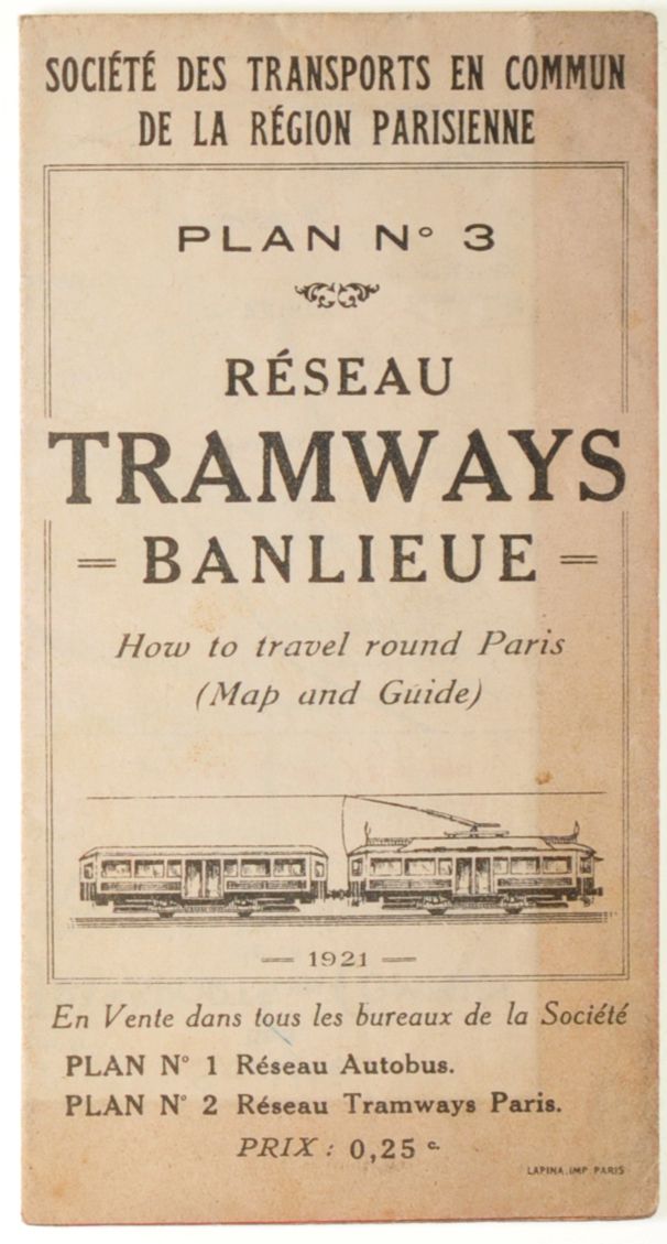 Category: French & French Colonial Paperwork & PublicationsPlan No 3, Reseau Tramways Banlieue (Suburban Tramways Network), multi-panel, folding. | |