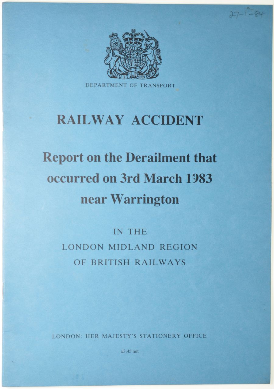 Warrington, 3rd March 1983, 12pp, with plans; Reddish Lane Public Level Crossing, 21st January 1983, 12pp; Elgin, 3rd February 1983, 9pp; Hilden, 25th March 1983, 18pp, with plans; Brunton Lane Level Crossing, 22nd March 1983, 16pp, with plans; Polmont, 5th August 1983, 6pp; Cadder, 16th August 1983, 10pp, (x2); Pitlochry, 22nd September 1983 and Pershore, 30th November 1984, 15pp, with plans; Paddington Station, 23rd November 1983, 20pp, with plans; Wigan North Western Station, 3rd February 1984, 9pp, with plans; Wrawby Junction, 9th December 1983, 9pp, with plans; Morpeth, 24th June 1984, 25pp, with plans; Polmont, 30th July 1984, 15pp, with plans; Birtley, 1st August 1984, 14pp, with plans; Wembley Central Station, 11th October 1984, 12pp, with plans; Longsight, 3rd December 1984, 10pp; Eccles, 7th December 1984, 12pp, with plans; Leyton Station, 20th August 1984 and Kilburn, 11th December 1984, 28pp, with plans; Summit Tunnel, 20th December 1984, 26pp, with plans. (20)