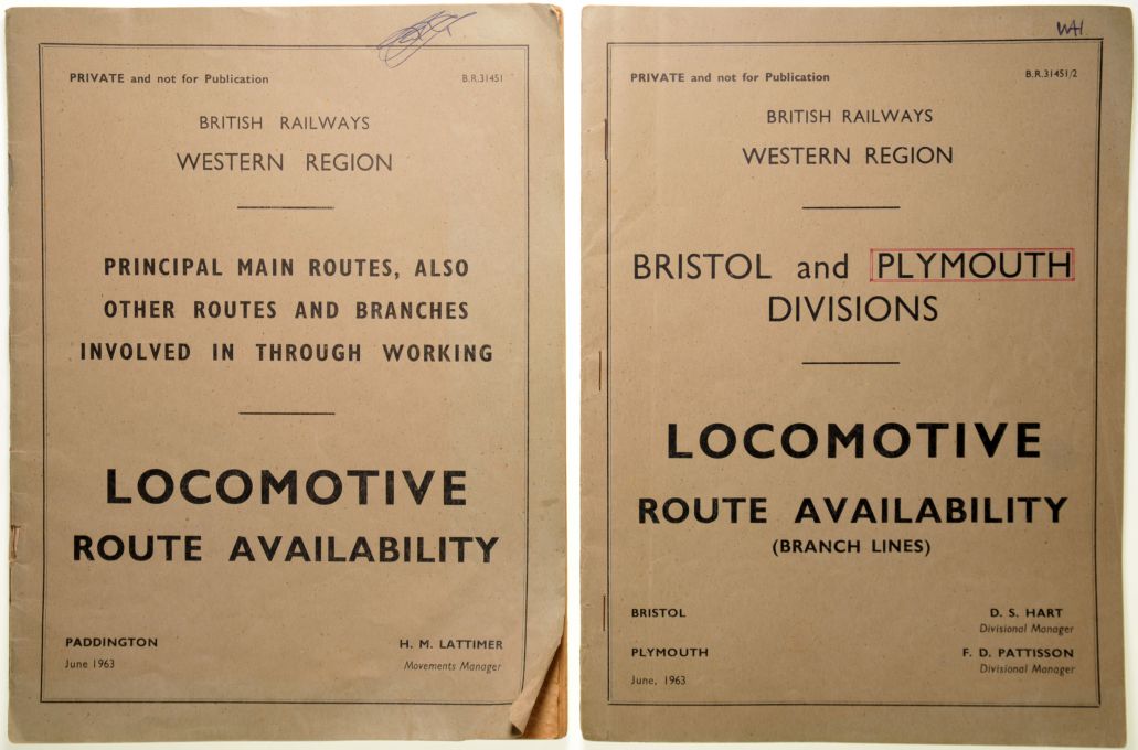 | Lot 263 | Category: InstructionsBR(W) Loco Route Availability, Cardiff, Gloucester and Ex Mid Div, Bristol and Plymouth (x2), Main Lines and Through Working, all June 1963. (5) |