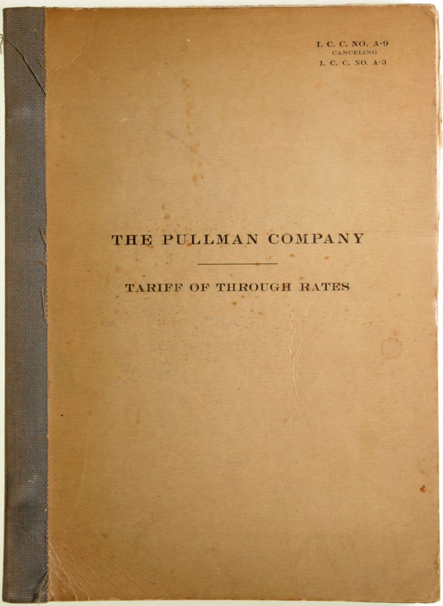 Category: InstructionsPullman Company, Tariff Of Through Rates, USA, Canada and Mexico, 25 April 1939, a thick volume within titled card covers. | |