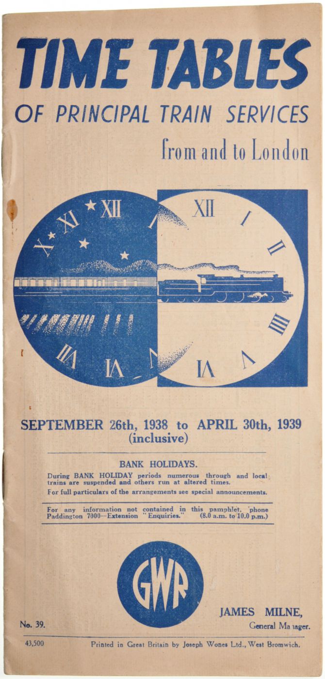 Category: Timetables (Public)GWR, Principal Train Services, London, 1938-9. £10 | |