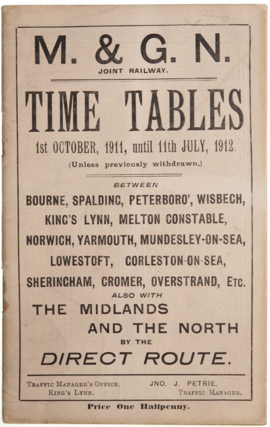 Category: Timetables (Public)M&GN, 1/10 1911 - 11/7 1912, 44pp. | |
