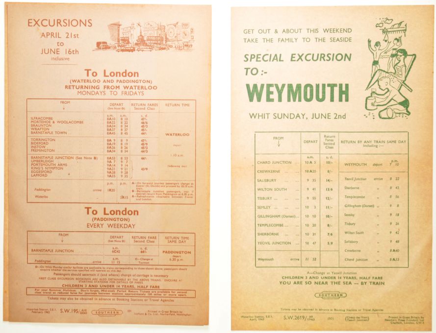 | Lot 491 | Category: HandbillsCollection of BR Southern West Country handbills, for cheap trips and excursions in the West of England. |